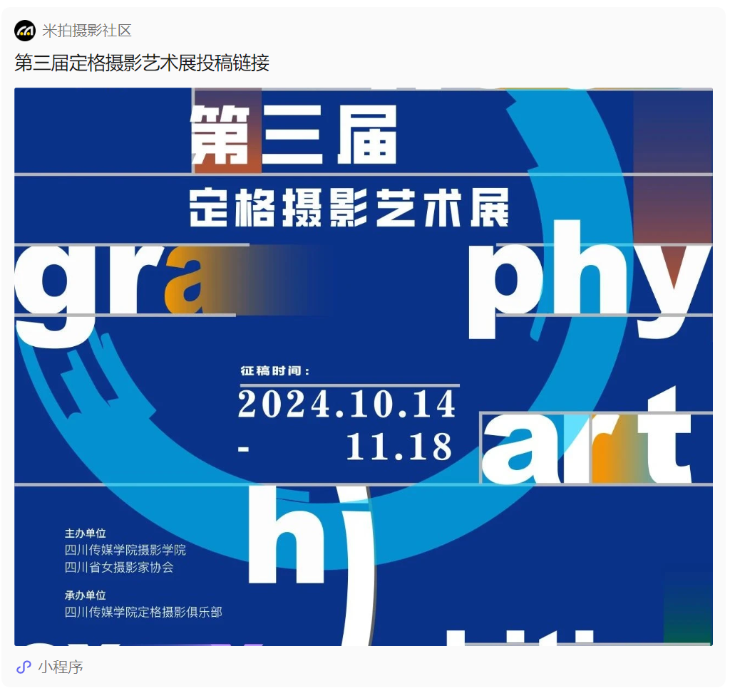 2024年第三届定格摄影艺术展现在面向本校所有在校的摄影爱好者征稿,欢迎各位同学们选送作品参加。