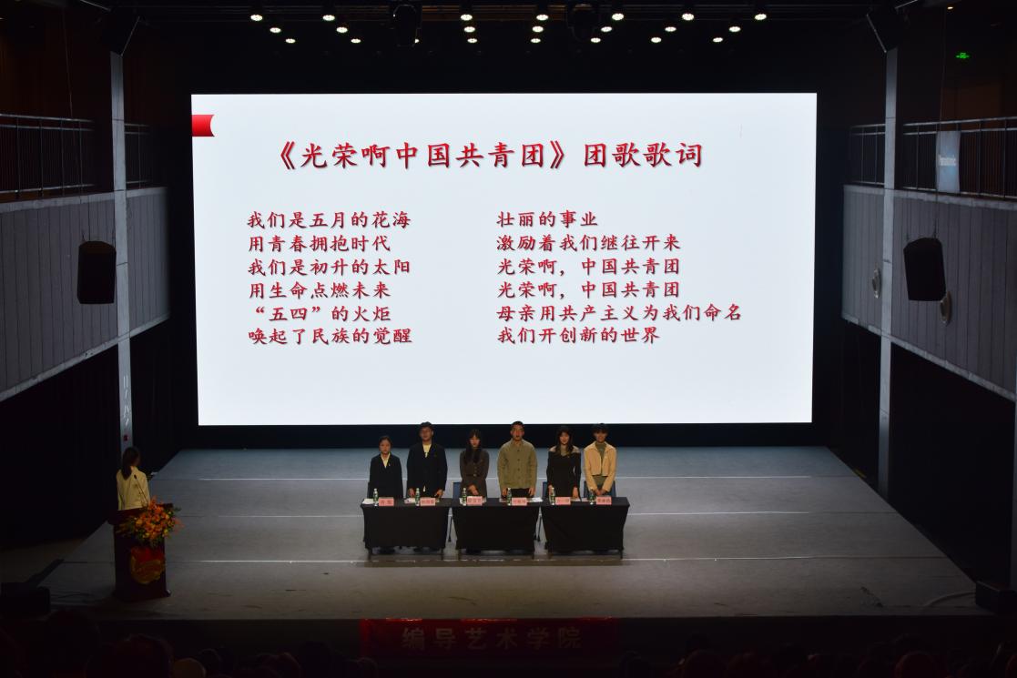 第二环节:全体师生起立,奏唱中国共产主义青年团团歌《光荣啊,中国共青团》。