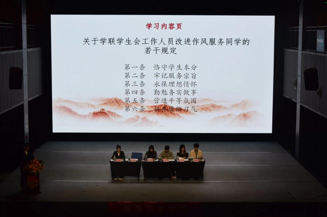 编导艺术学院第一党支部书记、编导艺术学院分团委书记何秋坤,学生会指导老师滕雪菲,分团委学生常务副书记兼学生会第一副主席杨尚泰,2022级、2023级学生负责人,以及2024新晋干部参加了此次会议。