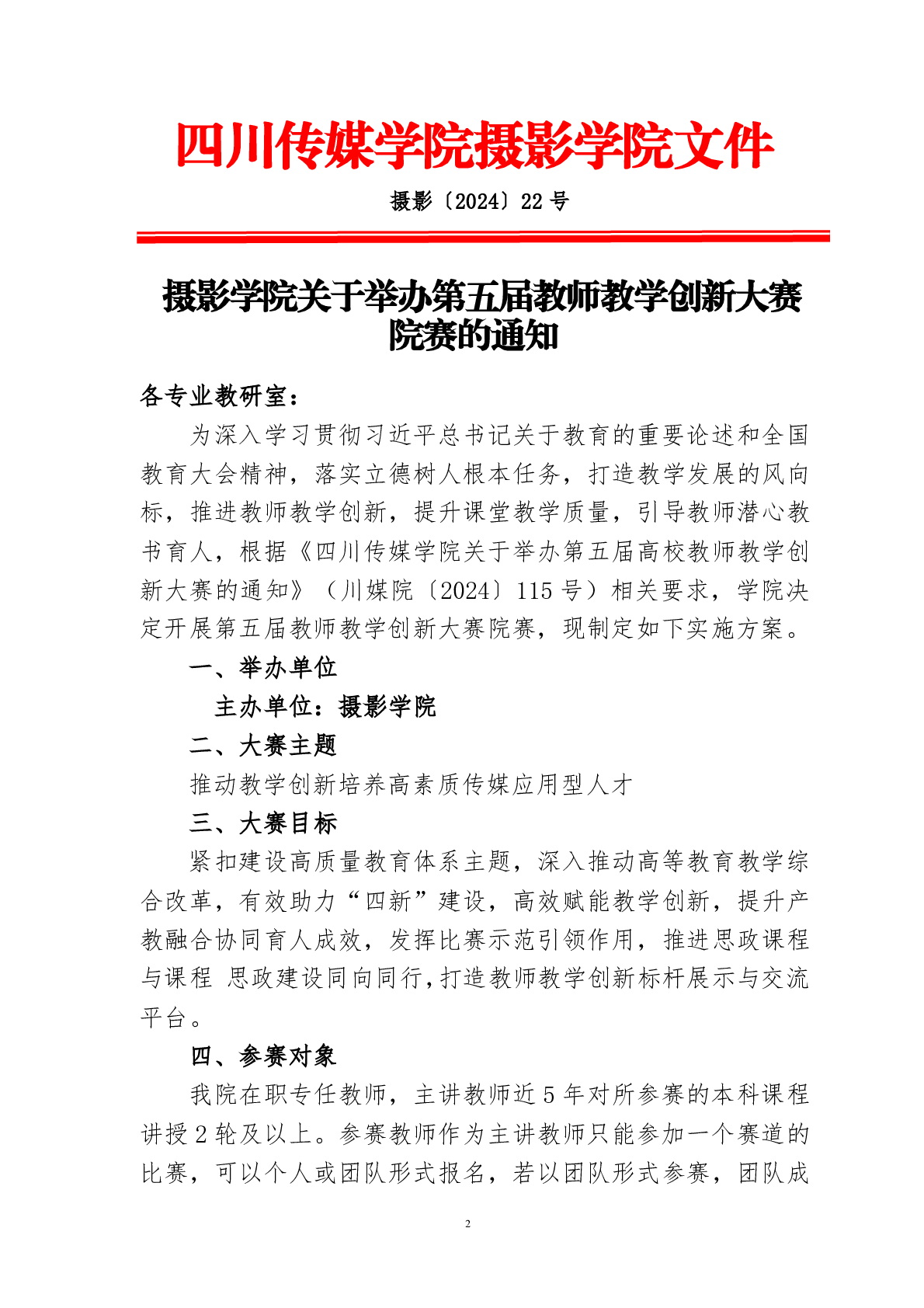 摄影学院关于举办第五届高校教师教学创新大赛院赛的通知