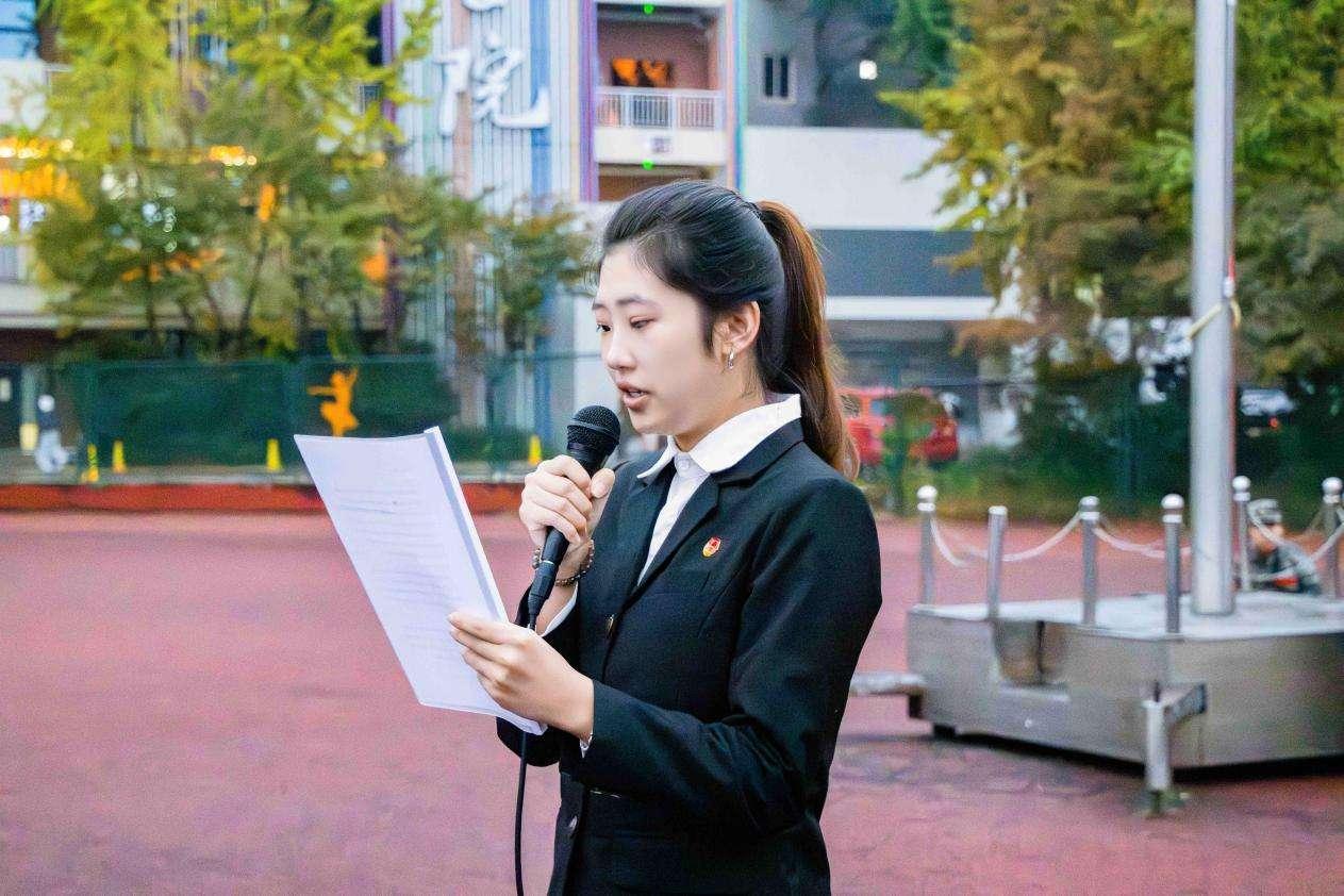 最后,升旗仪式接近尾声时,摄影学院教学副院长杨静老师进行了“国旗下的讲话”教育暨思政课。她表示:“新时代,青年生逢其时,应当勇担民族复兴重任,在青春年华树立起鸿鹄之志,坚持以党的精神、中国精神为指引,不断从爱国主义中汲取前进力量,为全面推进中华民族伟大复兴贡献青春力量。充分发挥青年群体作为建设者的积极作用,勇于承担历史赋予的使命,在担当中历练,在尽责中成长。让青春在爱国奋斗中绽放绚丽之花”。