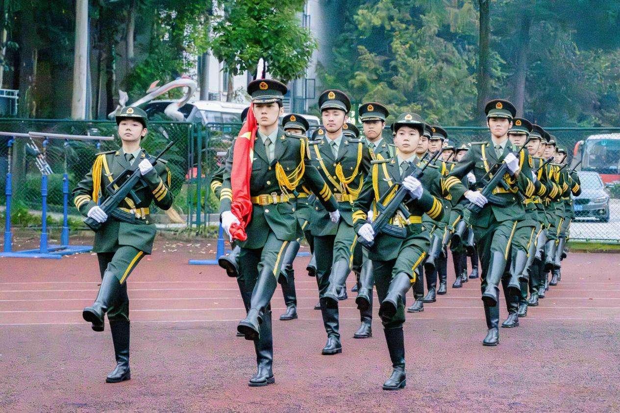 清晨7时,升国旗仪式正式开始。国旗仪仗队的同学们迈着整齐划一、铿销有力的步伐,护送着五星红旗正步走向旗杆。随着激昂的《义勇军进行曲》响起,全体师生面向国旗肃立致礼,注视着五星红旗冉冉升起,在熠熠晨光中迎风飘扬。激励了同学们爱党爱国热情,彰显了新时代青年风采。