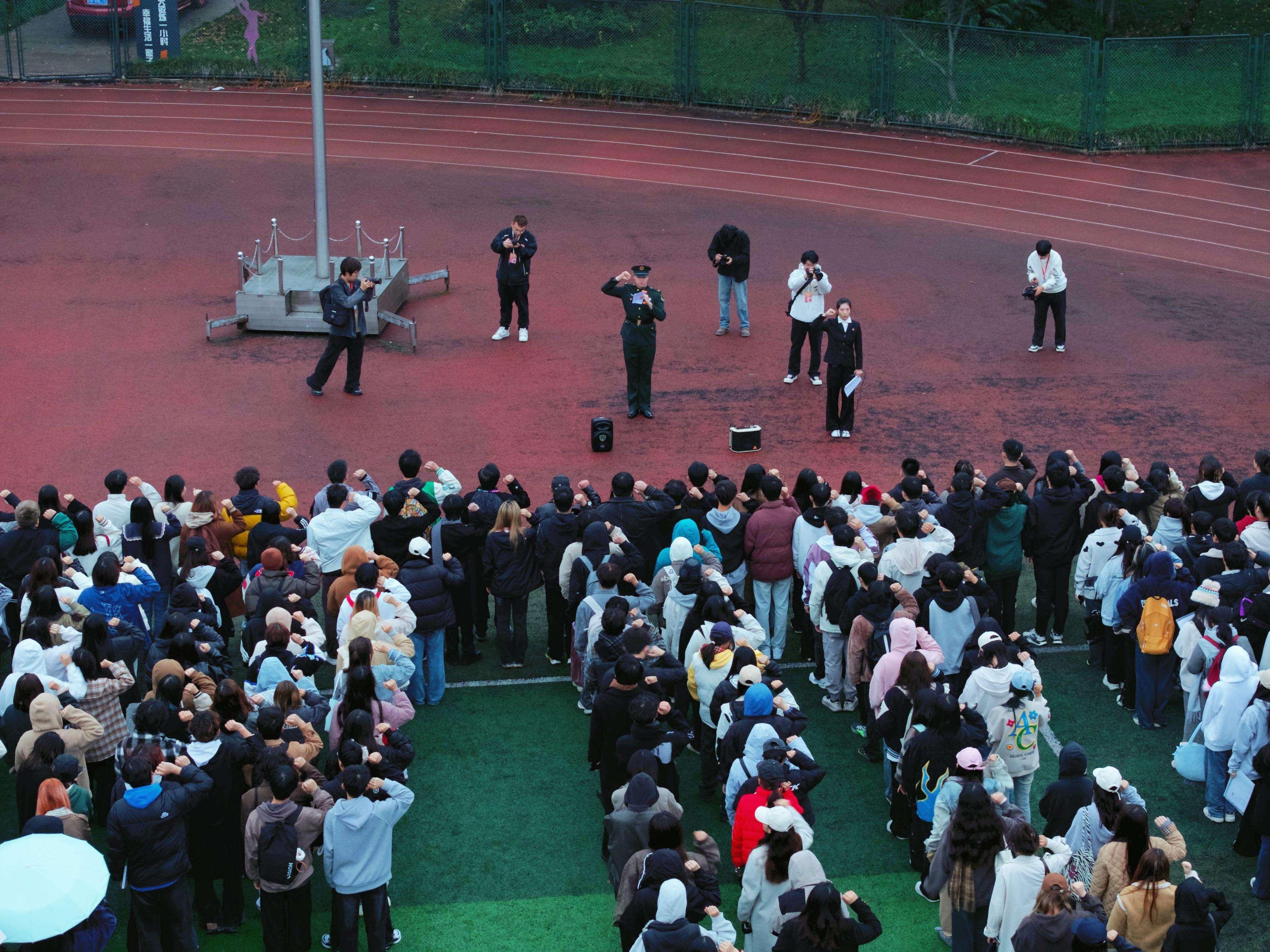 为弘扬爱国主义精神,提倡同学们树立远大理想,激发同学们的奋斗热情,于 2024年11月11日上午7点在东区操场举行升旗仪式。出席本次升旗仪式的有摄影学院党委书记王平、副院长杨静,帅国庆,袁帅、党委副书记余程玲、专业主任付斌,秦旭,白小犇,姬韶康、全体辅导员、学生干部代表、党员代表、团员代表、2024级全体新生。本次活动旨在强化同学们爱国主义精神,增强同学们的凝聚力和向心力。
