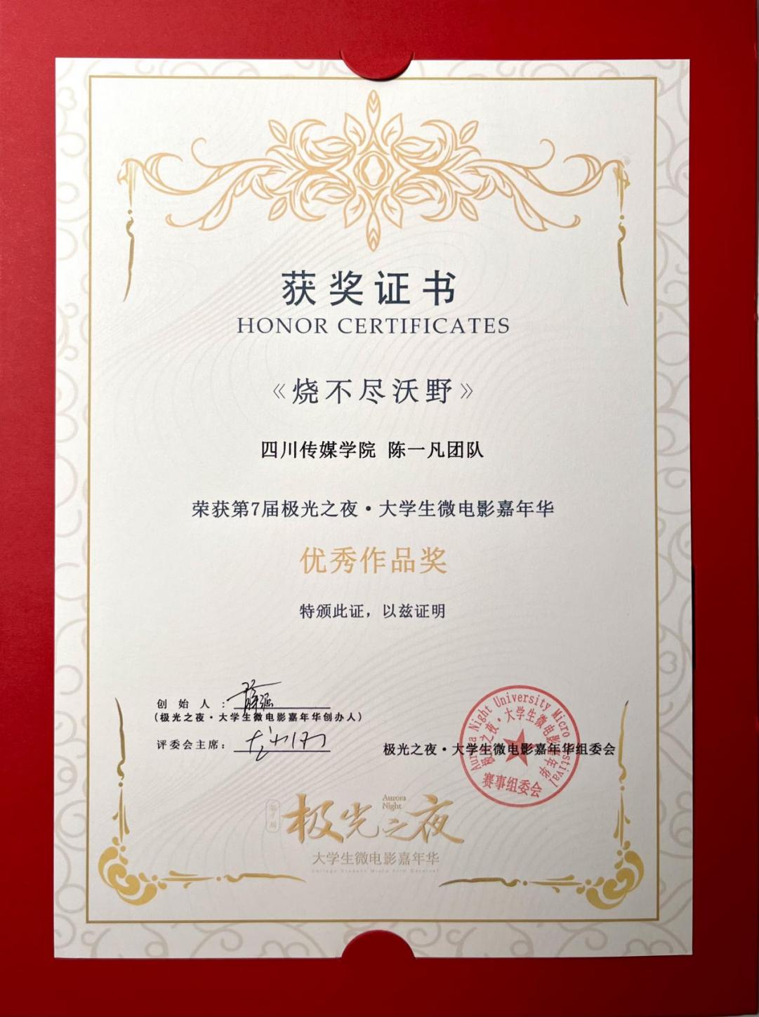 四川传媒学院编导艺术学院学生作品获第七届极光之夜·大学生微电影嘉年华“优秀作品奖”