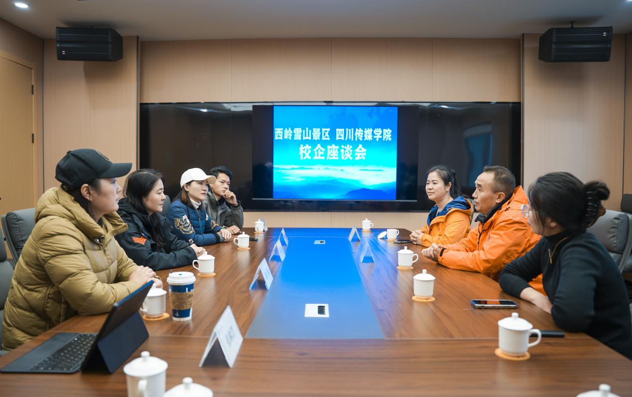 与此同时,四川传媒学院与西岭雪山景区的校企合作洽谈会也在景区内顺利进行。摄影学院教学副院长杨静教授代表学校,与西岭雪山景区管理层进行了深入交流与合作洽谈。会议由四川研学旅游联盟秘书长陈昌君主持,双方围绕合作的具体事宜展开了细致的讨论。