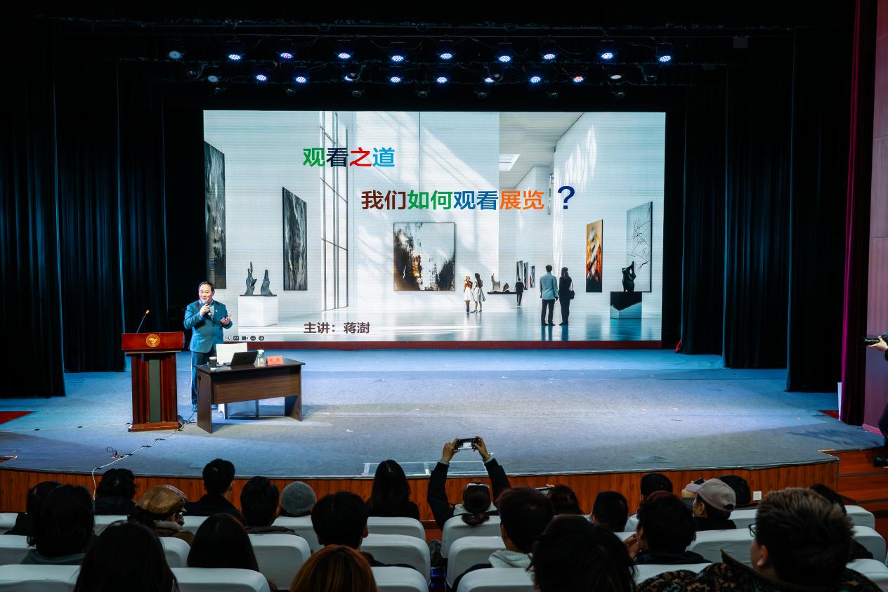 2024年12月14日,在四川传媒学院东区艺术交流中心,国家一级摄影师、中国摄影家协会理事、中国摄影金像奖获得者蒋澍教授,为川传师生带来一场主题为《观看之道——我们如何看展览》的讲座。摄影学院摄影专业主任秦旭副教授担任本次讲座的学术主持人,来自学校十三个院系的300余位学生、摄影学院教师代表、四川省摄影家协会驻会领导以及四川省摄影家协会攀峰计划高研班学员聆听了本次讲座。