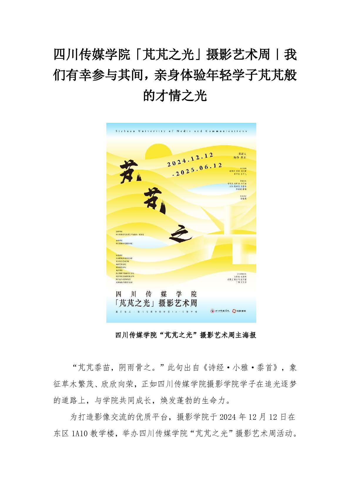 四川传媒学院「芃芃之光」摄影艺术周|我们有幸参与其间,亲身体验年轻学子芃芃般的才情之光