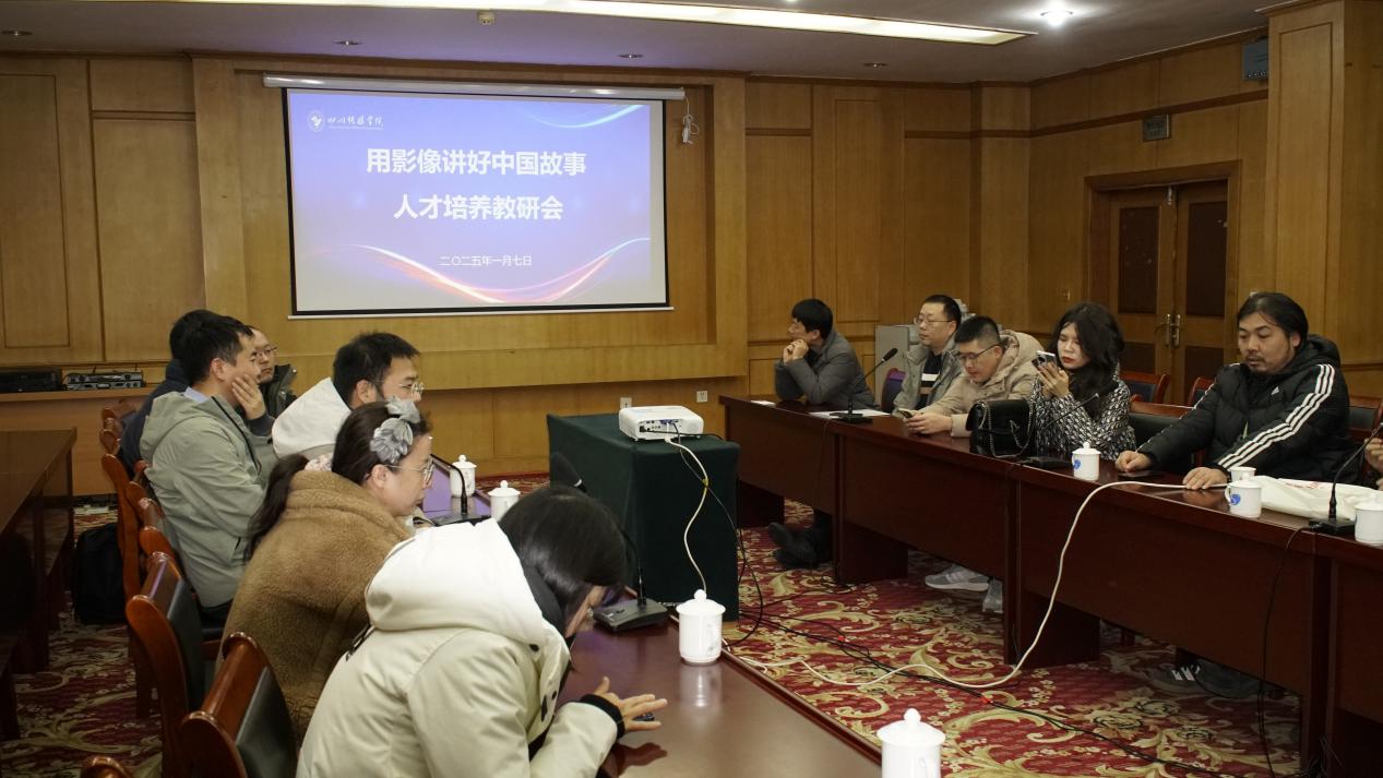 为落实学校《中共四川传媒学院委员会、四川传媒学院关于全面推进“课程思政”建设、落实立德树人根本任务的实施方案》《四川传媒学院课程思政全覆盖管理办法》等要求,加强学院课程思政建设,2025年1月7日,编导艺术学院在成都天奥宾馆组织开展了“用影像讲好中国故事”课程思政创意工作坊。研讨共分为主题培训与教研室研讨总结两个环节。编导艺术学院全体教师及与会专家参与研讨。