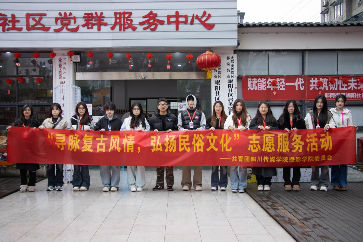 为了弘扬和传播传统民风民俗,为社区居民带来丰富的文化体验,增强志愿者们的社会责任感与文化素养。2025年3 月 3 日上午9时,共青团四川传媒学院摄影学院委员会的志愿服务团队满怀热忱地奔赴崛阳社区,开展以“寻脉复古风情,弘扬民俗文化”为主题的志愿服务活动。