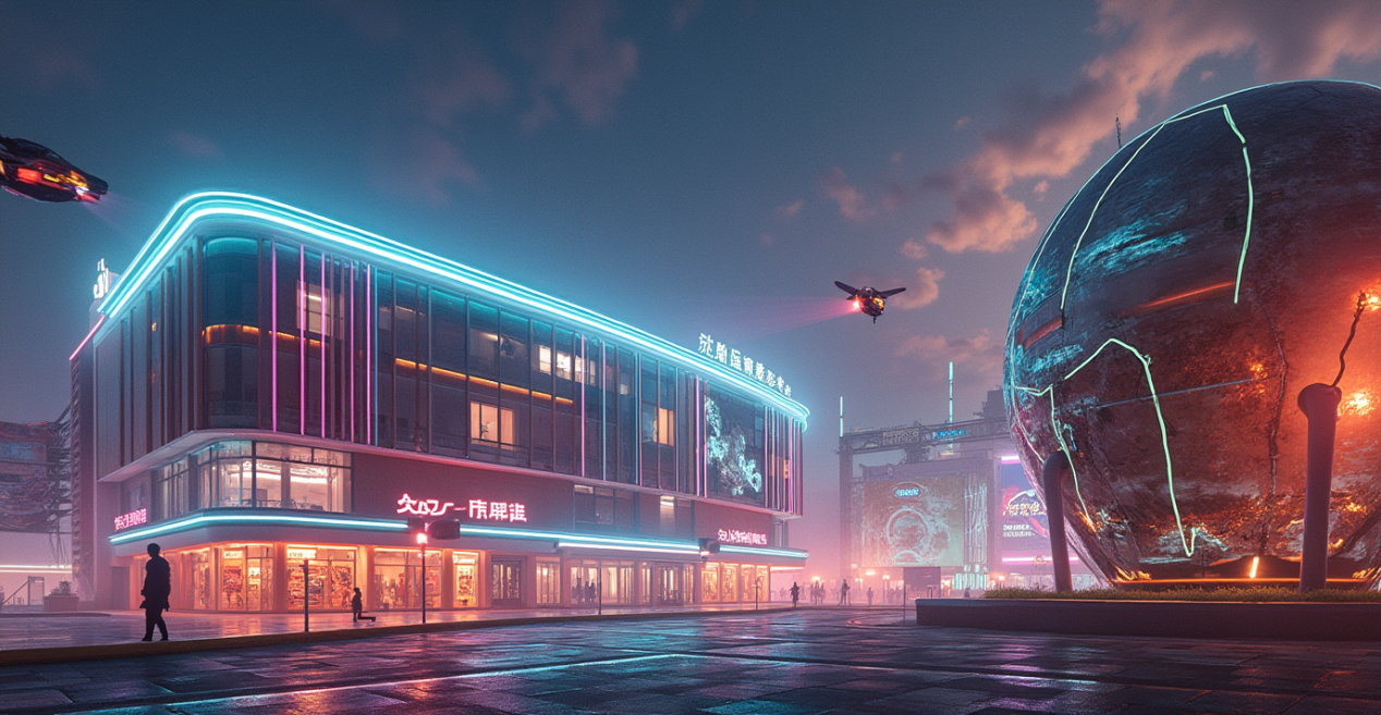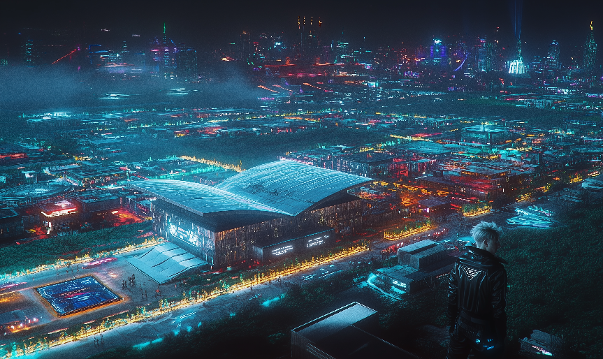 附图:Stable Diffusion 3.0生成的赛博朋克风格校园夜景