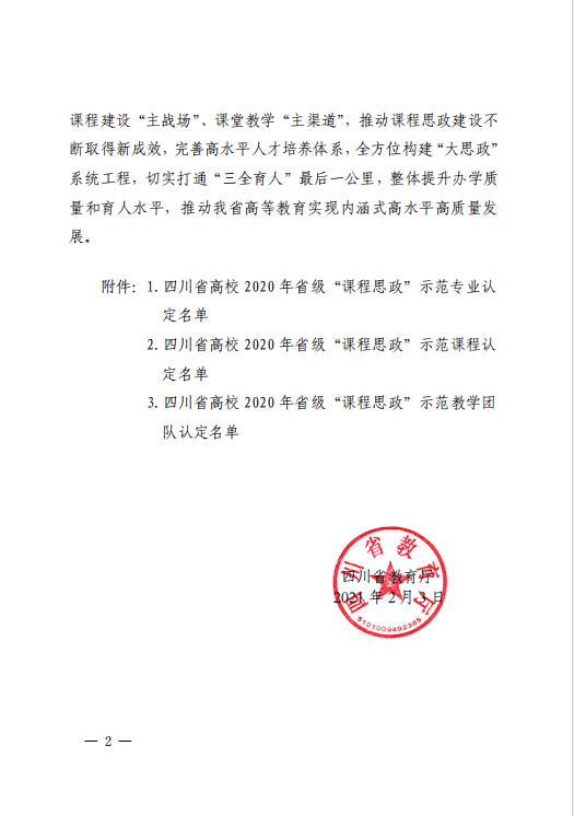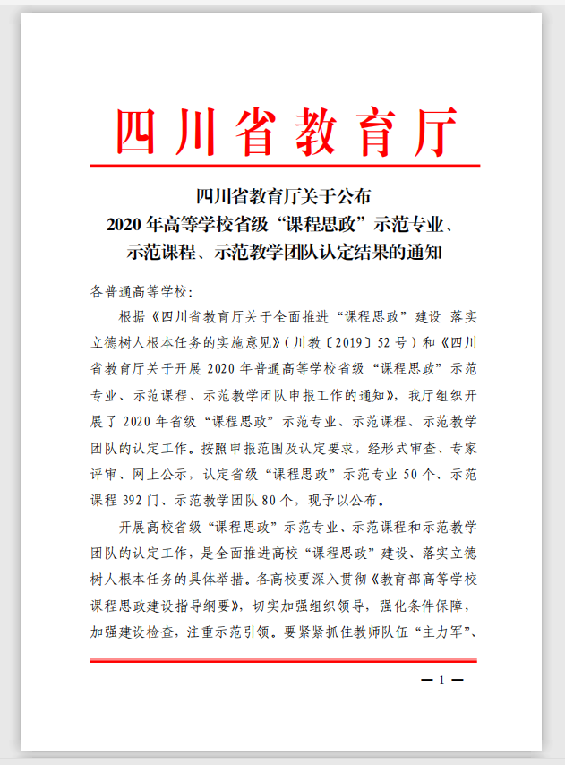 2021年,“影视传媒类专业创新创业课程组教学团队”获批四川省“课程思政”示范教学团队。