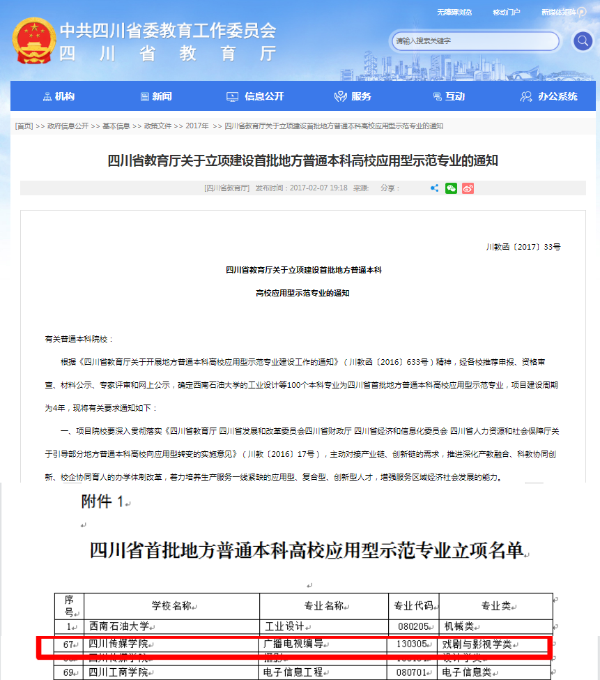 4、2017年,广播电视编导专业获批四川省首批普通高校应用型示范本科专业