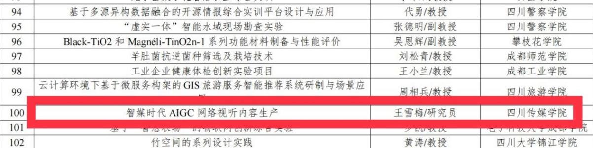 1、2023年,”智媒时代AIGC网络视听内容生产”获批2023年省级高等学校创新性实验项目。