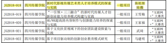 7、2018年,《新时代传媒艺术类人才培养模式建设改革试点》获批“四川省教育体制机制改革试点项目”获批“四川省2018-2020年高等教育人才培养质量和教学改革项目”