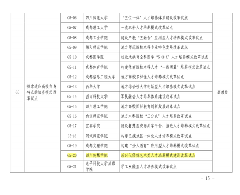 7、2018年,“新时代传媒艺术类人才培养模式建设改革试点”获批四川省教育体制机制改革试点项目