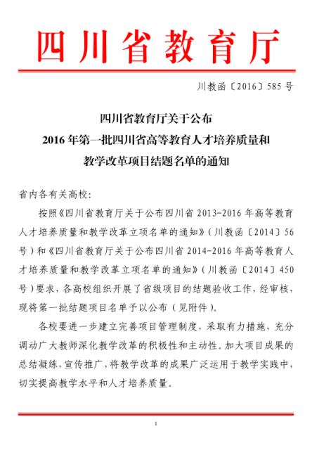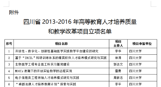 9、2014年,“卓越新闻传播人才培养中的实践教学体系构建”获批四川省2013-2016年高等教育人才培养质量和教学改革项目(已结题)