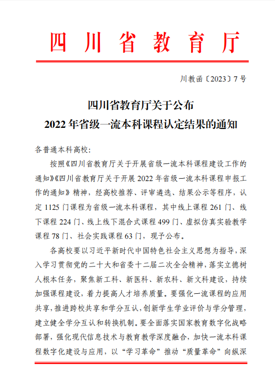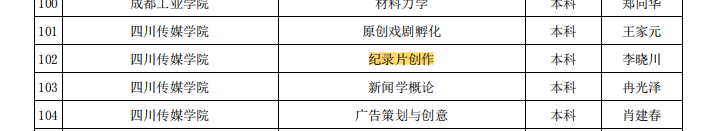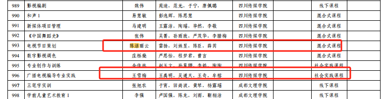 1、2023年,《广播电视编导专业实践》获批“四川省省级一流本科课程”