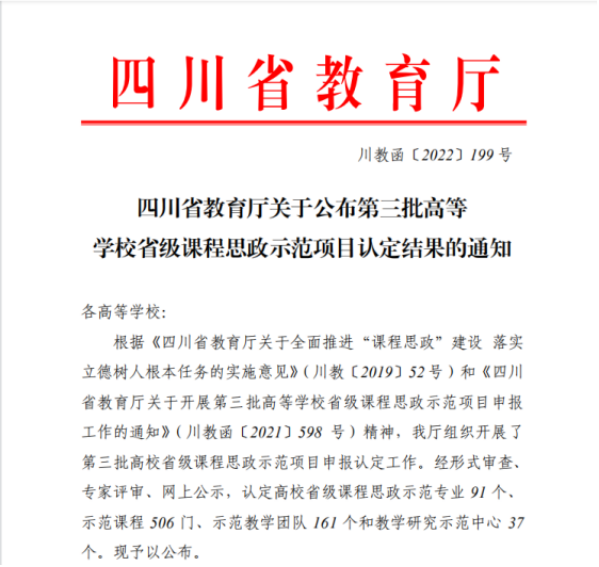 3、2022年,《广播电视节目形态研究》获批“四川省‘课程思政’示范课程”