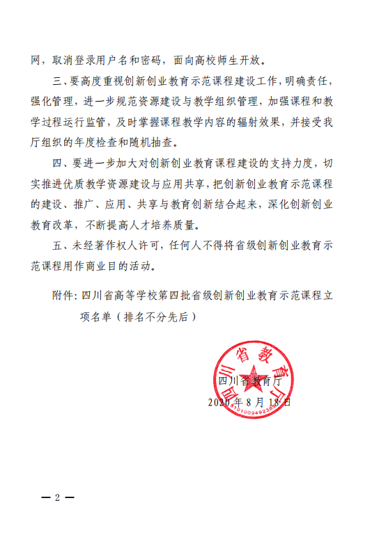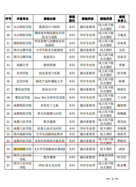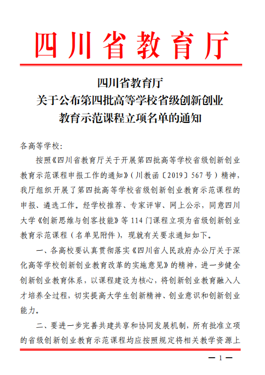6、2020年,《大学生创新创业基础》获批”四川省省级创新创业教育示范课程”