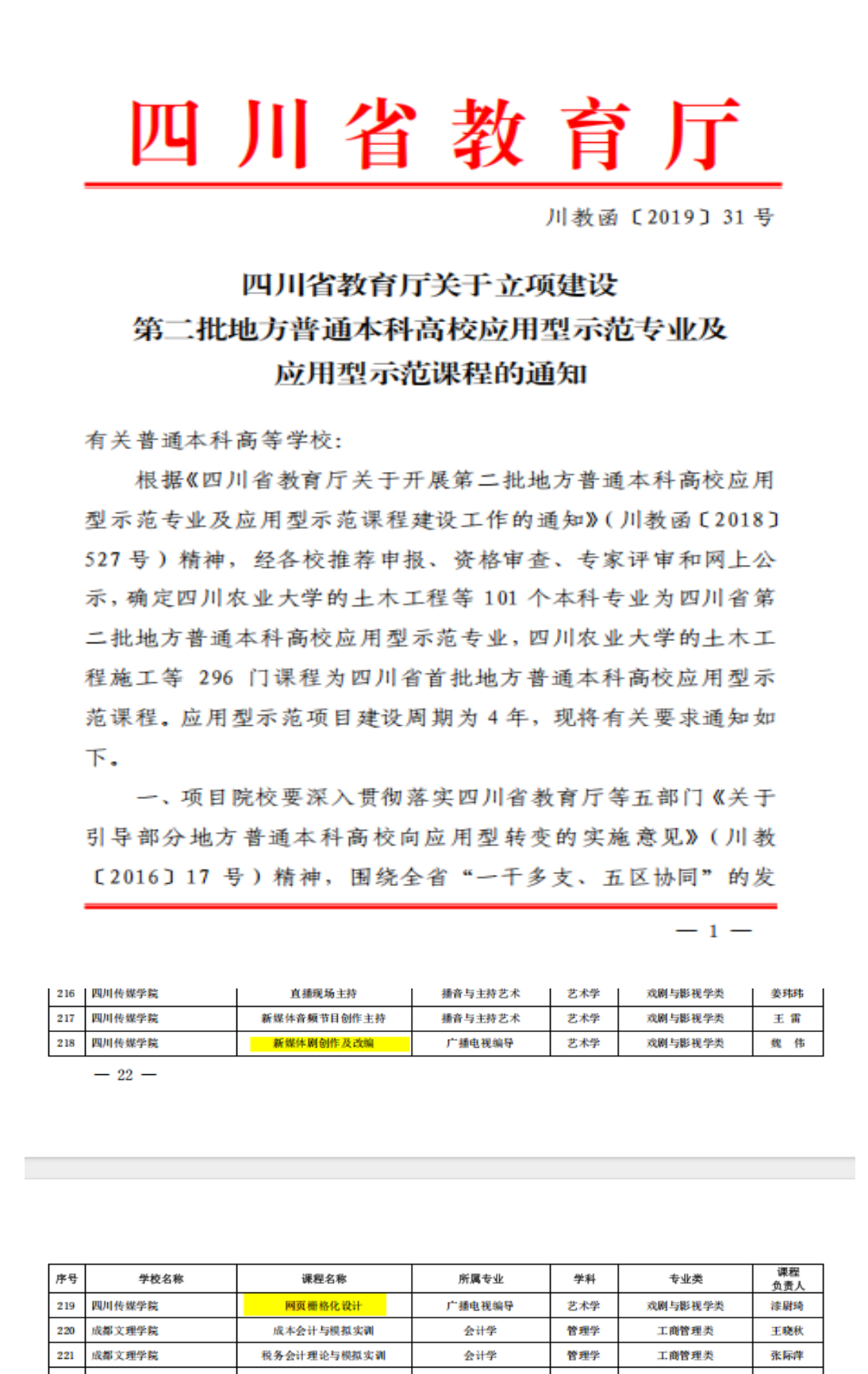 8、2019年,《网页栅格化设计》《新媒体剧创作及改编》获批四川省首批地方普通本科高校应用型示范课程