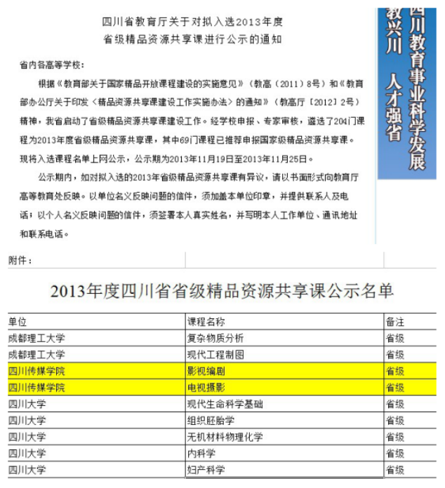 11、2013年,《影视编剧》获批“四川省省级精品资源共享课程”