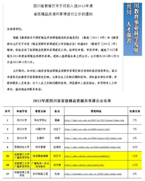 12、2012年,《电视画面编辑》获批“四川省省级精品资源共享课程”