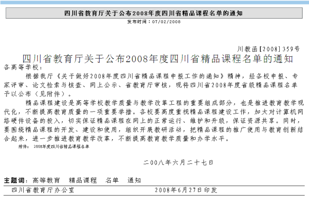 12、2008年,《广播电视一体化现场制作》获批四川省省级精品课程
