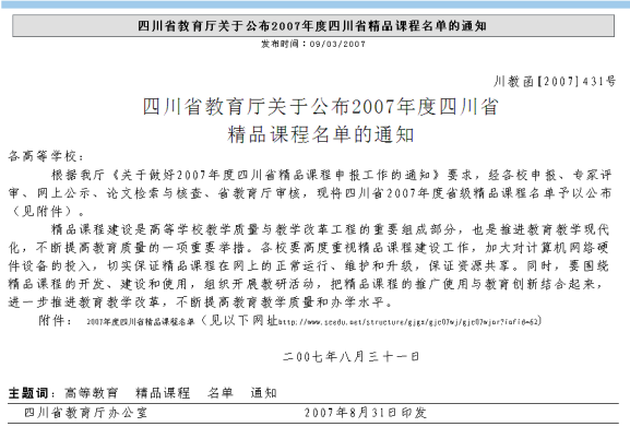 17、2007年,《电视画面编辑》获批“四川省省级精品课程”