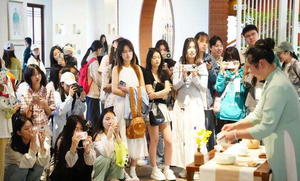 抵达跃华茶业庄园后,学生们有序集合分组,便开启了丰富的学习之旅。大家先后前往茶史博物馆、科普茶园基地、茶叶采摘与分拣区域、全自动生产流水线旁、成茶包装实践场地以及茶文化体验馆。在讲解员的带领下学生们穿梭历史,学习茶叶起源,了解茶园管理知识以及科学种植的重要性。明白采摘标准和分拣要点并学习不同茶品制作流程、包装和对茶叶品质的保护。还学习了茶道礼仪、泡茶技巧和品茶方法,领略传统茶文化魅力。