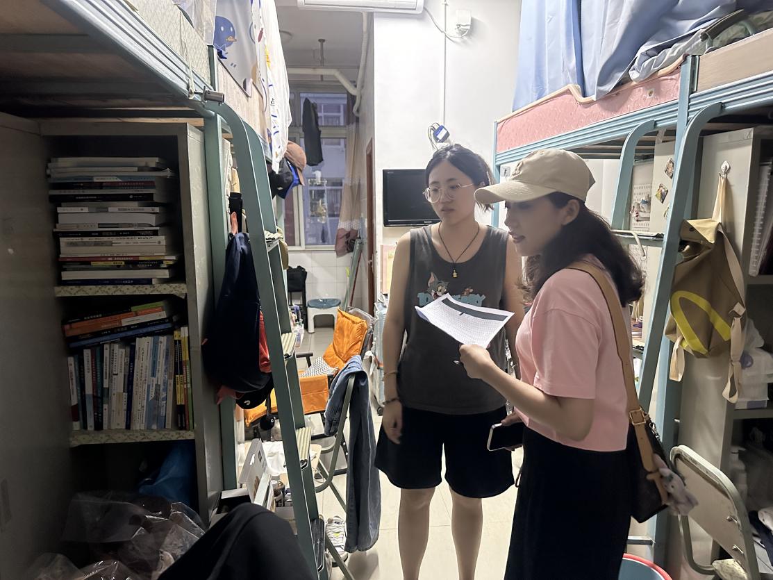 检查过程中,逐一对寝室清洁度、床铺整理等卫生情况进行了细致的评估。在安全排查中,重点检查了插线板是否超负荷使用、是否存在私拉乱接电线现象。部分寝室因物品摆放整齐、地面洁净、安全意识强获得高度肯定;但也发现个别寝室存在卫生死角清理不及时、插线板未固定等问题,辅导员现场记录并督促整改。