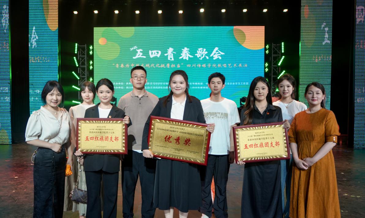 活动现场还颁发了四川传媒学院第十七届五四红旗团支部奖牌,我院2023级广播电视编导本科08班团支部、2023级广播电视编导本科09班团支部顺利通过前期材料审核与评比答辩,获奖团支部书记代表团支部上台领奖。