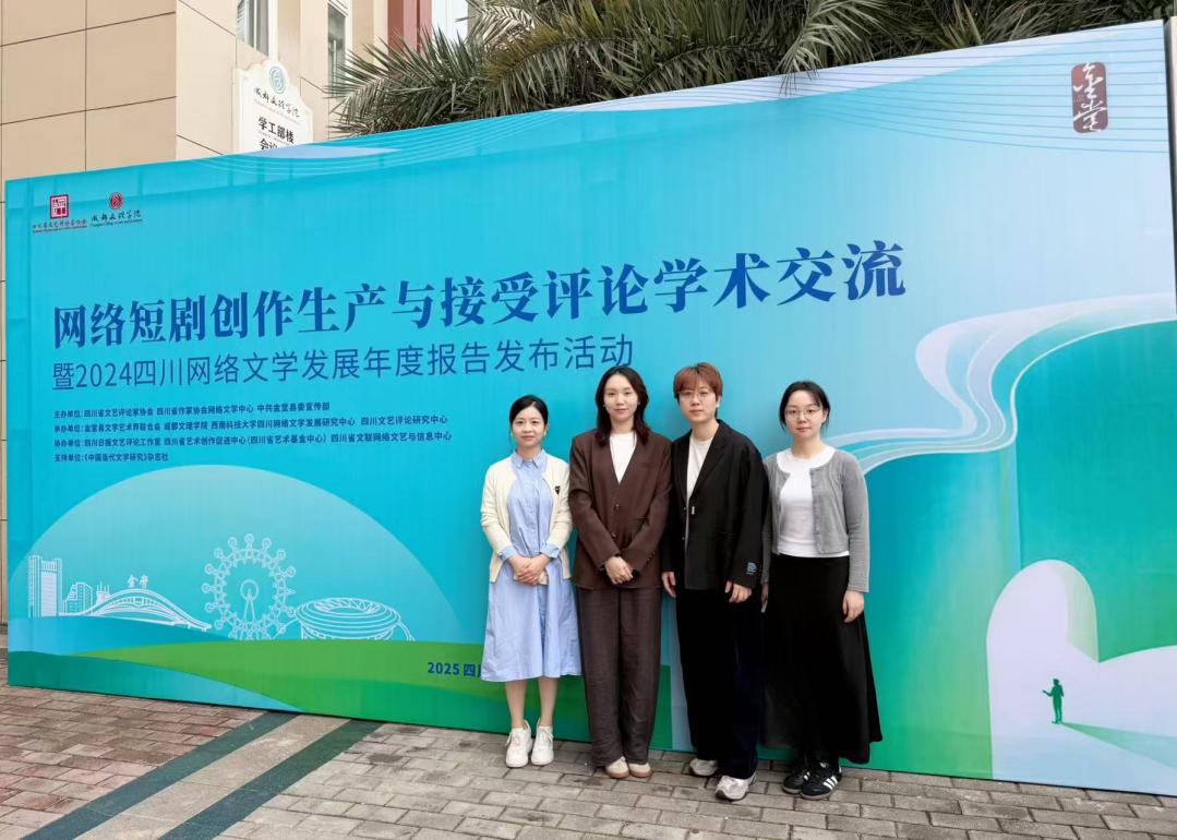 2025 年 10 月 11 日,由四川省文艺评论家协会、四川省作家协会网络文学中心、中共金堂县委宣传部联合主办,金堂县文学艺术界联合会、成都文理学院、西南科技大学四川网络文学发展研究中心、四川文艺评论研究中心共同承办的“网络短剧创作生产与接受评论学术交流暨 2024四川网络文学发展年度报告发布活动”在四川省成都文理学院圆满举行。来自全国高校、科研机构、影视企业、网络文学领域的专家学者、创作者及媒体代表齐聚一堂,围绕网络短剧行业发展与网络文艺生态构建展开深度研讨。四川传媒学院智能影像艺术学院院长助理陈洁丽云,教师刘姝昱、薛芮、李文娣应邀参会。