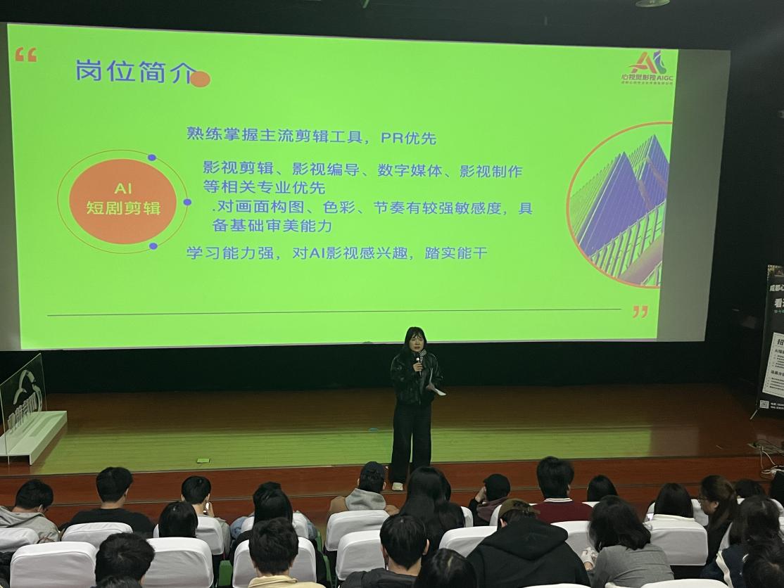 2025年11月3日下午,智能影像艺术学院组织的“精准对接,互利共赢”专场宣讲会在就业创业梦想动力港110成功举办。本次宣讲会邀请了成都心视觉传媒公司,为同学们提供了深入了解AI行业及公司发展的平台,也为广大学生提供了宝贵的就业机会。