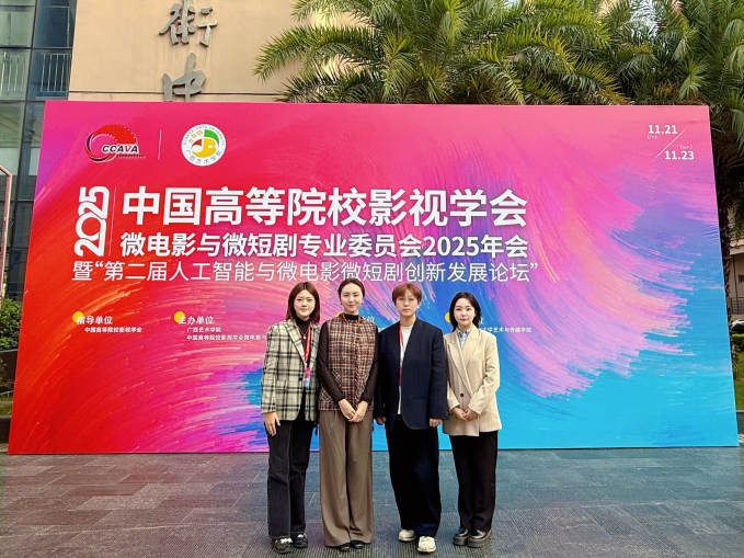 2025年11月21日——11月23日,由中国高等院校影视学会指导,广西艺术学院、中国高等院校影视学会微电影与微短剧专业委员会主办,广西艺术学院影视与传媒学院承办,北京师范大学艺术与传媒学院协办的中国高等院校影视学会微电影与微短剧专业委员会2025年会暨“第二届人工智能与微电影微短剧创新发展论坛”在广西南宁圆满举行。四川传媒学院智能影像艺术学院院长助理陈洁丽云,教师刘姝昱、周璇、李文娣应邀参会。