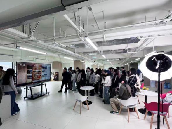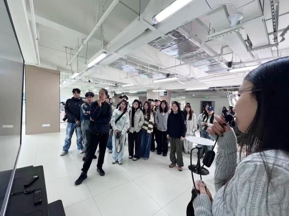 师生一行先后参观了:“AIGC校企融合智创中心”、“专业直播间与选品中心”和“数字IP展示与实训平台”。同时,围绕电商直播视觉呈现、AIGC图像创作、摄影影像前沿应用等主题,师生与园区技术、运营人员深入交流,探讨纪实影像在直播场景、数字人拍摄、文化IP可视化中的实践路径。