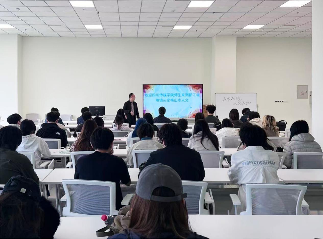 2026年4月7日,四川传媒学院智能影像艺术学院摄影专业《纪实摄影》课程第二次外出采风实践圆满完成。本次实践教学由杨静副院长和专业教师黄森威、胡榆桐带队,两个班级共60名同学走进都江堰·青城智旅谷健康数字经济产业园,在园区负责人李甜及相关工作人员的热情接待下,开展专业参观、交流与学习活动。